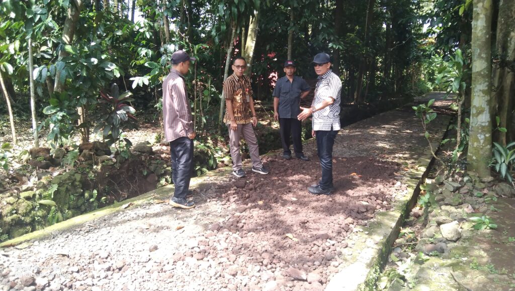 Kepala Desa Talagening Ibnu Sulistio Bersama Kaur Perencanaan dan Kepala Dusun I Mendampingi Camat Bobotsari Meninjau Lokasi yang Akan Dilaksanakan Rabat Beton. Dok (DS).
